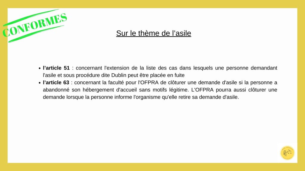 Lorsque la procédure est respectée, notamment quand les dispositions ont un lien suffisant avec le projet de loi initial, le Conseil peut dire qu’elles sont conformes et ne pas nécessairement examiner ces dispositions à la lumière des droits et libertés protégés par la Constitution. Ces dispositions sont applicables. Elles pourront faire l’objet d’un examen au fond lors d’une procédure de question prioritaire de constitutionnalité.