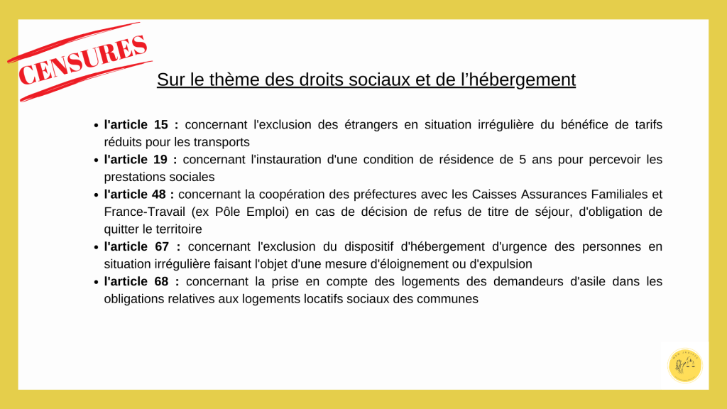 Cet article résume la décision du Conseil Constitutionnel, et permet de savoir ce qui est désormais applicable depuis la promulgation de la loi le 25 janvier 2024.