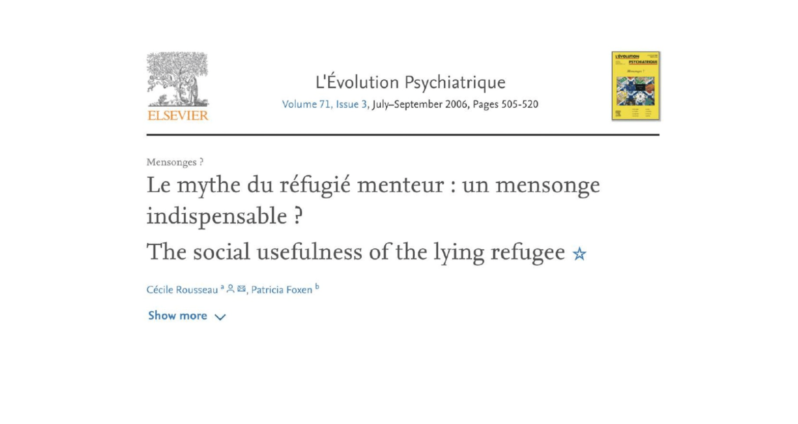 Le Mythe du réfugié menteur par Cécile Rousseau & Patricia Foxen